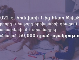 Ամսական 50,000 դրամ աջակցություն՝ 3-րդ և հաջորդ երեխաների ծնվելու դեպքում
