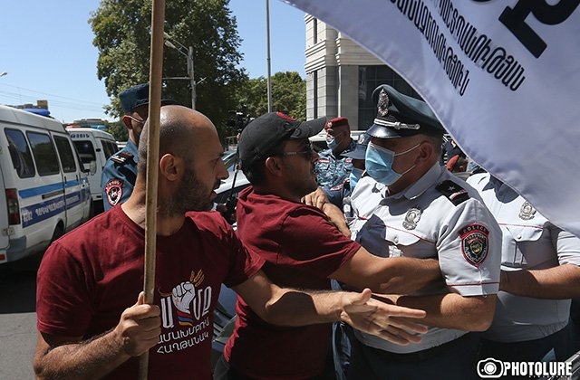 Ոստիկանները բերման ենթարկեցին նաև նախաձեռնության ղեկավար Վահագն Չախալյանին և դիմադրություն ցույց տված մյուս անդամներին։